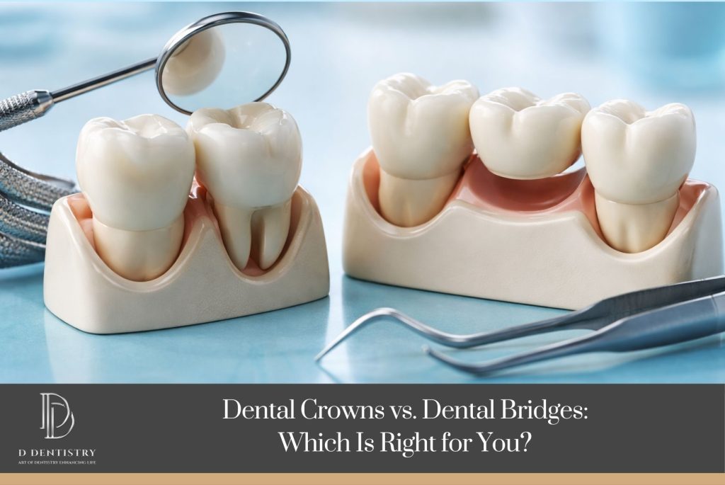At D Dentistry, we believe informed patients make the best decisions for their oral health. Let’s break down the differences between dental crowns and dental bridges so you can better understand which option may be right for you.